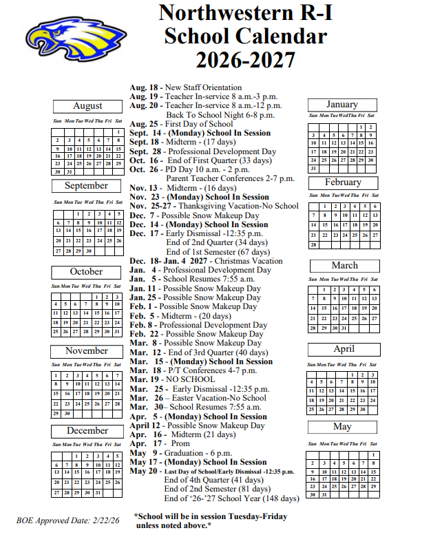 Calendar: 2026-2027